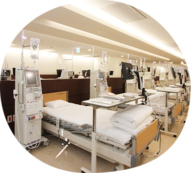 透析ベッドを55床に増床。一般的な血液透析はもちろん、腹膜透析(CAPD)、オンラインHDFなどを行っています。